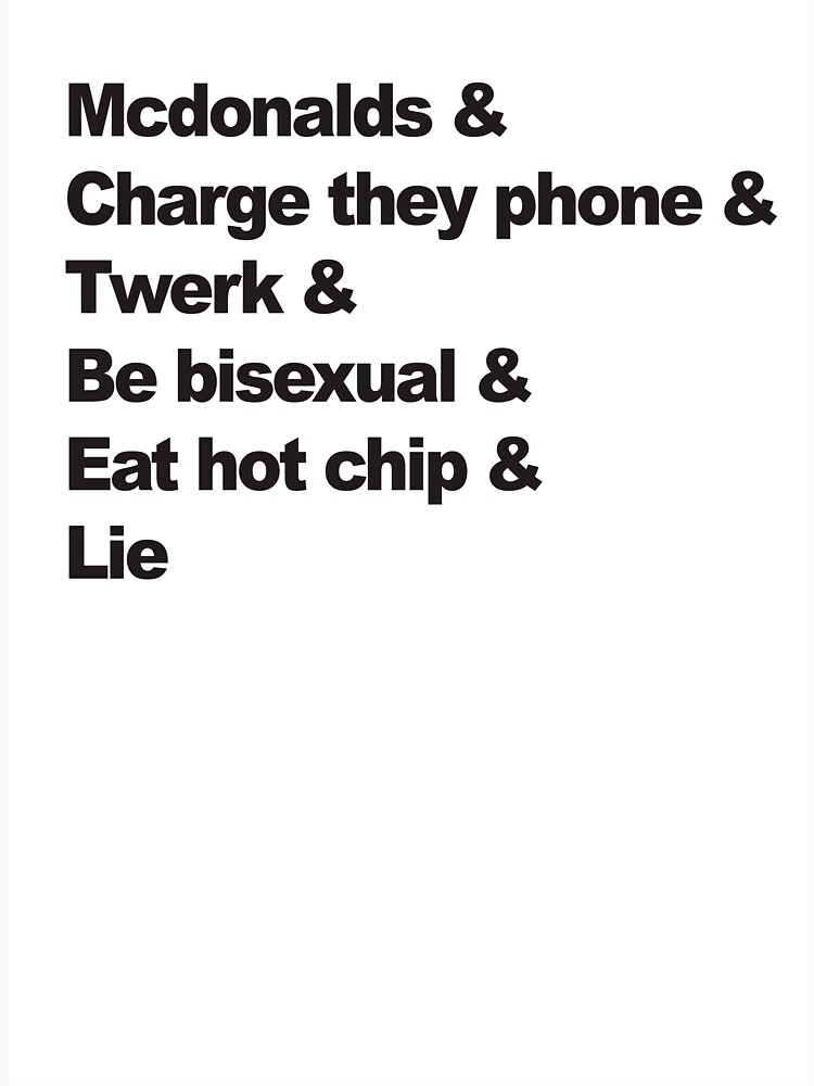All they know is mcdonald's, charge they phone, twerk, be bisexual, eat hot chip and lie.